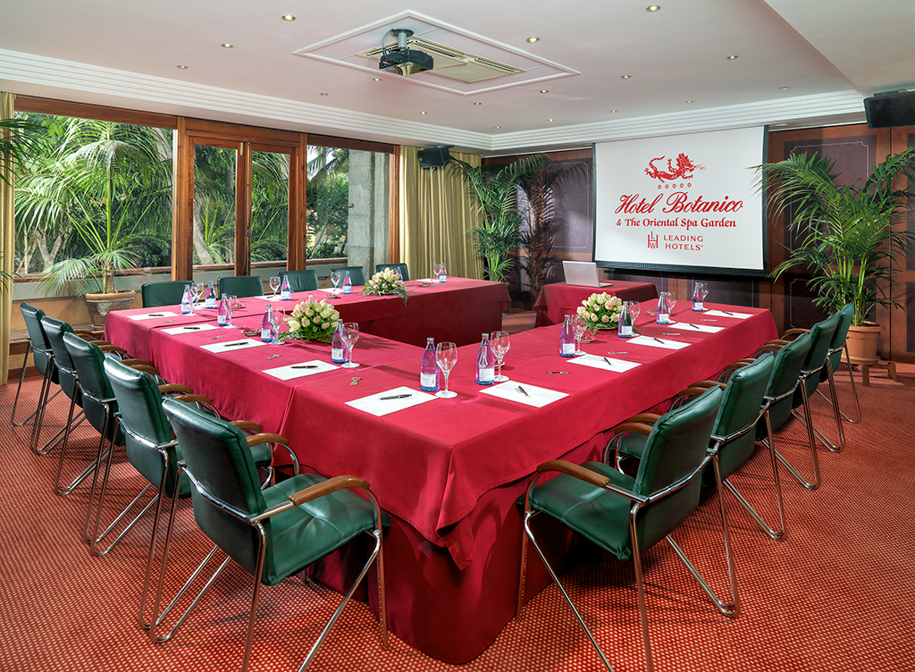 Por una parte, en el exterior su espléndido jardín subtropical, de 25.000 m2 con un primaveral clima que lo envuelve, hacen del Hotel Botánico, el marco ideal para celebraciones al aire libre: elegantes cócteles, recepciones, cenas de gala, bodas, comuniones, presentaciones, coffee-breaks, etc.