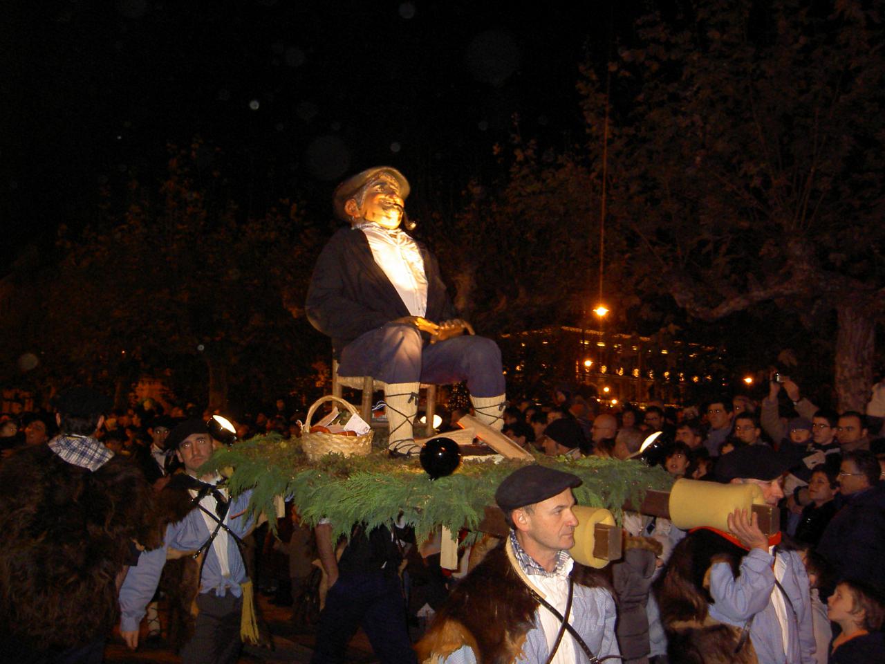 La primera cita importante del calendario navideño de Navarra tiene lugar el 24 de diciembre. Horas antes de celebrar la tradicional cena de Nochebuena, muchas localidades navarras, entre ellas Pamplona, salen a la calle para recibir a Olentzero, un carbonero tripudo y bebedor que baja del monte para anunciar el nacimiento de Jesús y repartir regalos a los pequeños de la casa. El Olentzero puede ser un muñeco o una persona, suele llevar la cara tiznada, una pipa y una boina y va sentado en una pequeña plataforma que es portada en andas por el grupo que lo acompaña. La comitiva, vestida normalmente con trajes de caseros y caseras vascas, va recorriendo las calles mientras entona villancicos populares al son de los txistus y fanfarres.
