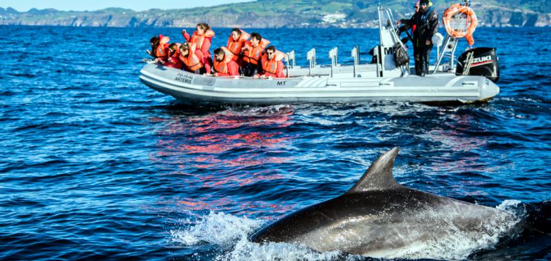 Azores es uno de los mejores lugares del planeta para el avistamiento de cetáceos. A principios de la década de los ochenta se generalizó la prohibición de la caza de ballenas y hoy en día se calcula que cerca de 25 especies, entre residentes y migratorias, pueden ser observadas en sus aguas. En los meses de primavera entre las islas de São Miguel y Santa Maria, es habitual el avistamiento de ballenas azules, el mayor animal del mundo, con cerca de 30 metros y hasta 150 toneladas de peso.