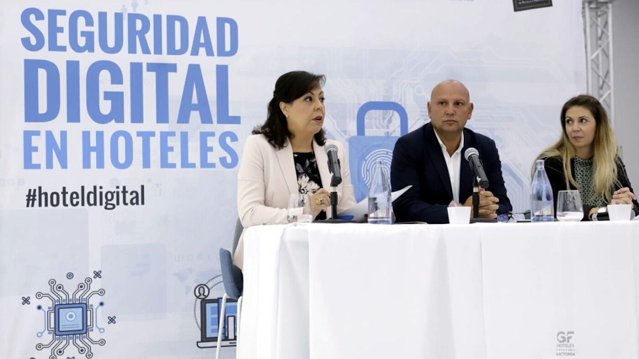 Por su parte, López habló de cambios enormes en los tiempos que corren, una era difícil, por lo que “desde el sector hotelero tenemos que contribuir y dar respuesta a los retos que se presentan en un mundo más digital, conectado e inmediato”. La también directora general de GF Hoteles recordó que los hoteleros están obligados “a garantizar la seguridad de nuestros clientes ante posibles ciberataques”. “El delincuente del siglo XXI no lleva un pasamontaña ni vendrá a robar a punta de pistola la recaudación de un bar piscina o de un restaurante en un hotel. Ahora, ese ciberdelincuente te roba desde el otro lado del mundo sentado cómodamente en un sillón de su casa manejando la red y accediendo a tus ficheros de datos y robándote información sensible de clientes o de la empresa por la que pedir luego un rescate, o directamente clonando datos de tarjetas de crédito de clientes a los que poder dejar su saldo a cero”, comentó.