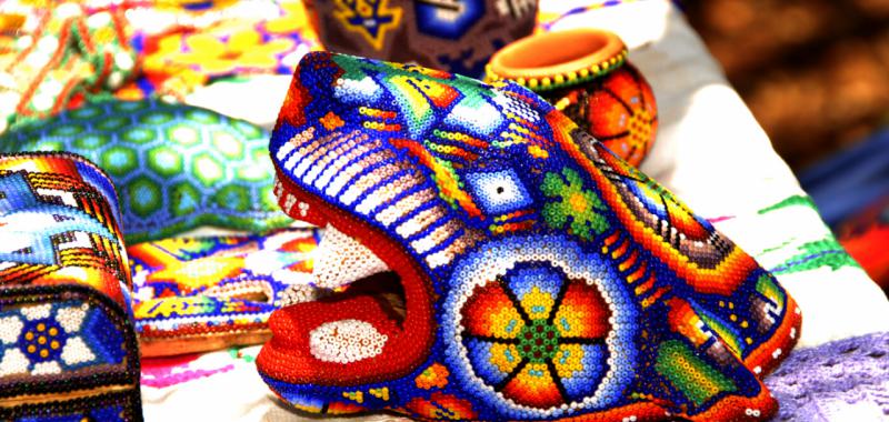 Los Huicholes son obras de arte elaboradas con cuentas diminutas de diversos colores, que se mezclan en combinaciones asombrosas para dar vida a una historia. Cada pieza de Huichol expresa la reverencia, relación e interdependencia de las personas con la naturaleza.