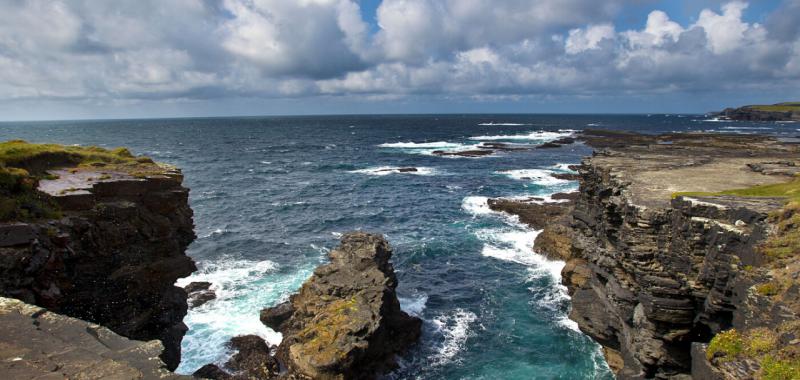 Avanzamos y llegamos a Kilkee, una pequeña localidad del Condado de Clare, que da nombre a los acantilados. Déjate maravillar por la inmensidad del Océano Atlántico y su incesante sonido. De altura menor que los Moher, los acantilados Kilkee son menos turísticos y una buena opción si quieres disfrutar de la calma del paisaje. Existen diferentes rutas de mayor o menor distancia que permiten descubrir joyas de la naturaleza como las piscinas naturales ‘The Pollock Holes’, o ‘Intrinsic Bay’, nombrado en honor del barco Intrinsic, hundido en la zona.