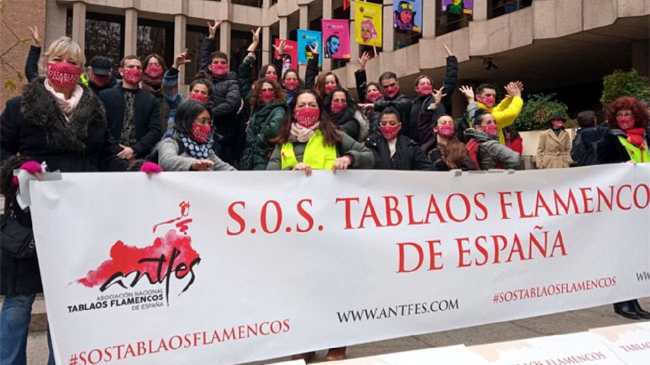 "Los tablaos flamencos dan trabajo al 95% de los artistas de flamenco de nuestro país. Si desaparecen los tablaos, desaparece ese 95% de artistas, y prácticamente desaparece el flamenco" así lo ha explicado durante la concentración Juan Manuel del Rey, presidente de la Asociación Nacional de Tablaos Flamencos (ANTFES), quien también ha resaltado que solo un 10% de los tablaos han podido abrir esporádicamente desde su cierre en marzo.