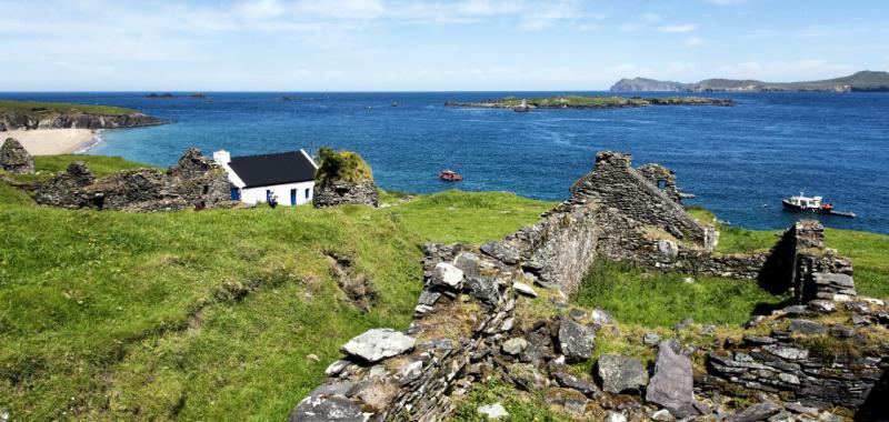 Sin agua caliente y electricidad, la isla de Gran Blasket, o An Blascaod Mór en gaélico, es la isla principal de un grupo de seis que abarcan tres millas de costa de la deslumbrante península de Dingle en el condado de Kerry.