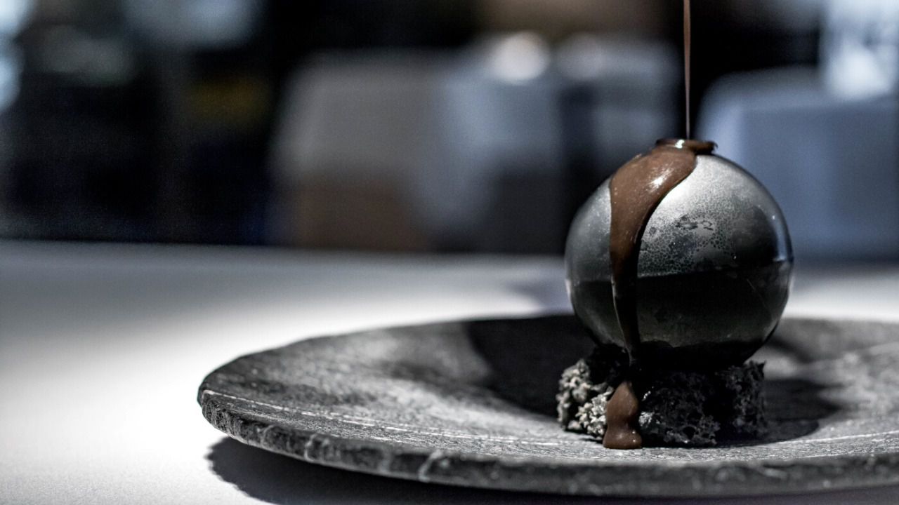 Helado negro por fuera y rojo por dentro. Las Aceitunas de Autor de Iván Muñoz son una propuesta elegante para culminar un menú de gala. El broche de oro donde la explosión cromática convive con la excelencia organoléptica.