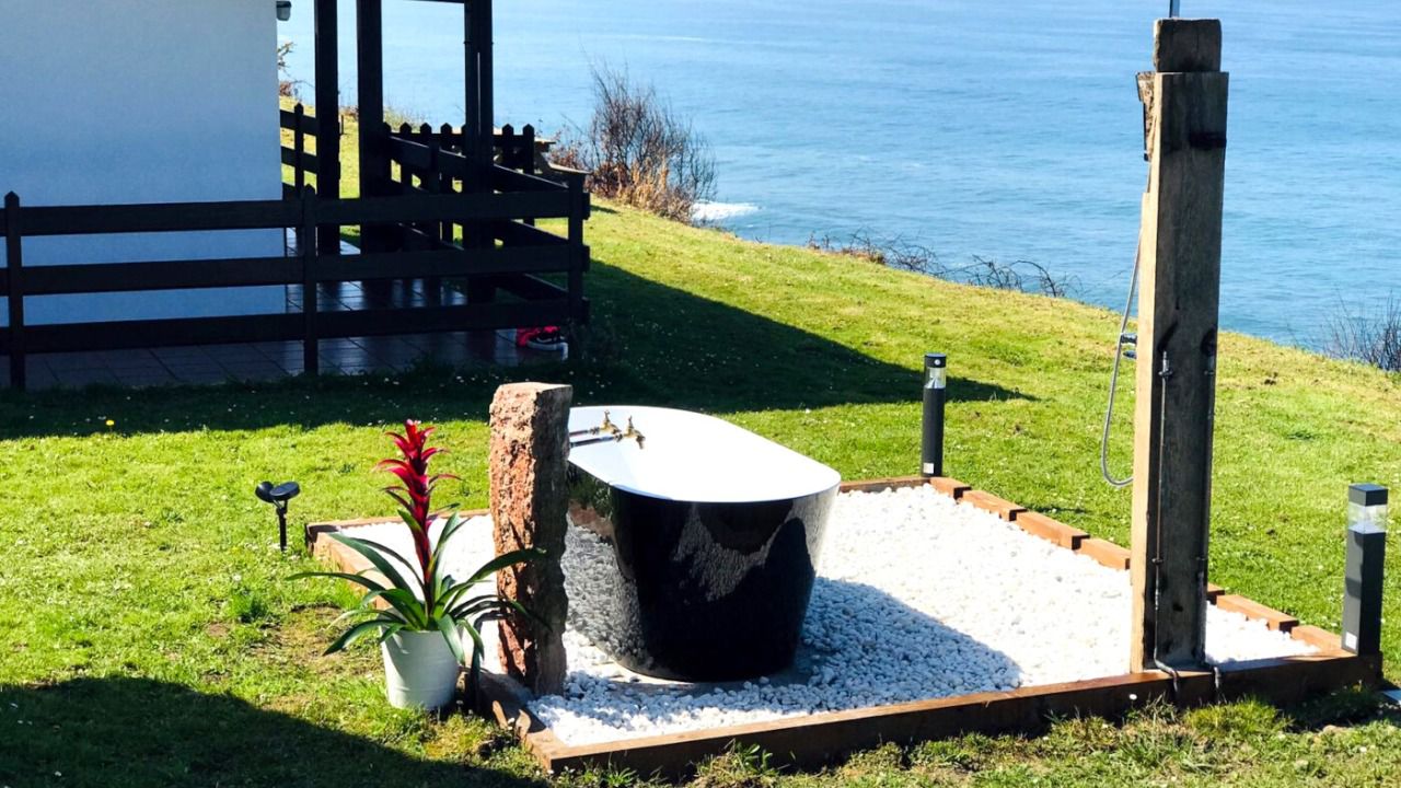 En el acantilado de Oles se encuentra esta casita para dos diseñada para olvidarse de todo y relajarse con el romper de olas y el viento. Los huéspedes podrán disfrutar de increíbles puestas de sol desde la bañera exterior, rodeados de prado y mar. Equipado con todas las comodidades, este es el alojamiento perfecto para una escapada en pareja.