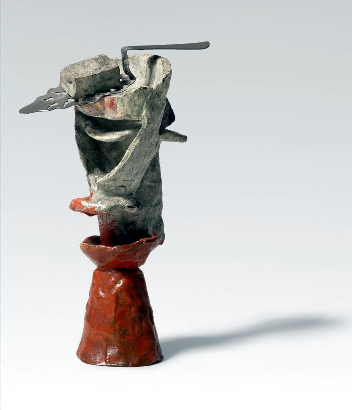 En 1914 Picasso también realizó siete versiones diferenciadas de ‘Copa de absenta’, una escultura cubista singular, en cuanto a que se presenta como la síntesis de las obras de esta época ya que, aunque fue modelada en yeso y fundida en bronce siguiendo el sistema más tradicional, incorpora, a su vez, un objeto real, una cuchara, y mantiene la fragmentación cubista de los planos. Actualmente, tres de estas copas se encuentran en Estados Unidos, en The Museum of Modern Art y en el Metropolitan Museum of Art, ambos en Nueva York, así como en el Philadelphia Museum of Art. Otras dos en Europa, en el Centro Pompidou de París y en el Berggruen Museum de Berlín. La única ‘Copa de Absenta’ que conservó el propio Picasso pertenece a la Fundación Almine y Bernard Picasso para el arte (FABA). Habiendo sido exhibida en importantes exposiciones internacionales, en la actualidad forma parte de la colección permanente “Diálogos con Picasso. Colección 2020-2023” del Museo Picasso Málaga.