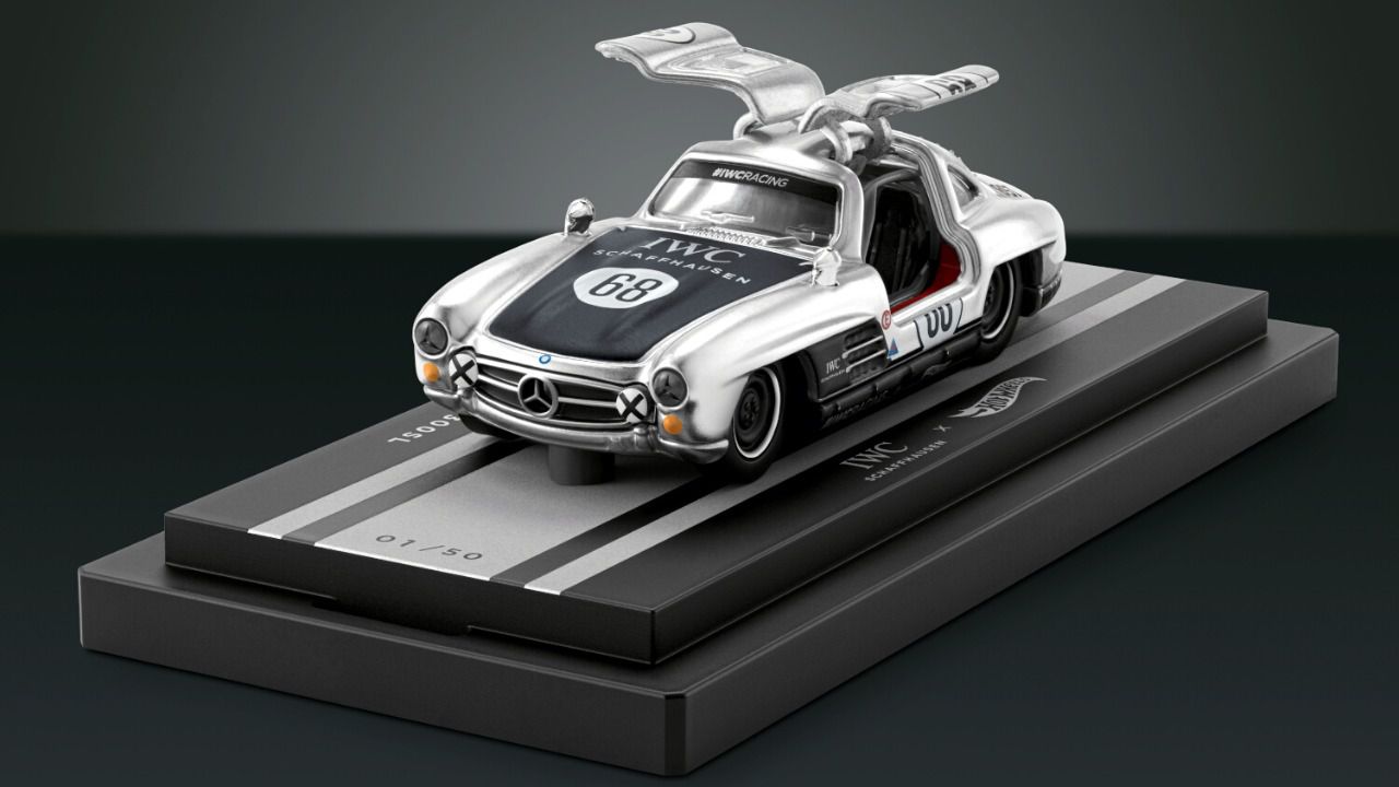 Mientras que el 300 SL a tamaño real se alineó en la parrilla el domingo, su réplica a escala 1:64 fue el centro de atención el día anterior, cuando IWC y su socio Hot Wheels™ lanzaron el set de colección "IWC x Hot Wheels™ Racing Works". Limitado a 50 piezas, contiene el Reloj de Aviador Cronógrafo Edición "IWC x Hot Wheels™ Racing Works" y el Hot Wheels Mercedes-Benz 300 SL "Racing Works Edition", presentado en una caja de herramientas de metal. El primer conjunto de los 50 está siendo subastado con fines benéficos por la casa de subastas internacional Bonhams, y los beneficios se destinarán a la Fundación Two Bit Circus. Esta fundación quiere crear experiencias de aprendizaje para los niños con el motivo de inspirar el espíritu empresarial, animar a los jóvenes inventores e inculcar el cuidado del medio ambiente.