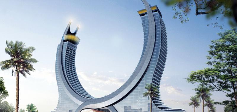 Torres de Katara (Finales de 2022)*: Estas icónicas torres en Lusail son una traducción arquitectónica del sello nacional de Qatar, que representa las espadas tradicionales de cimitarra. La parte superior de cada 'espada' albergará un hotel de lujo, Raffles y Fairmont, respectivamente.