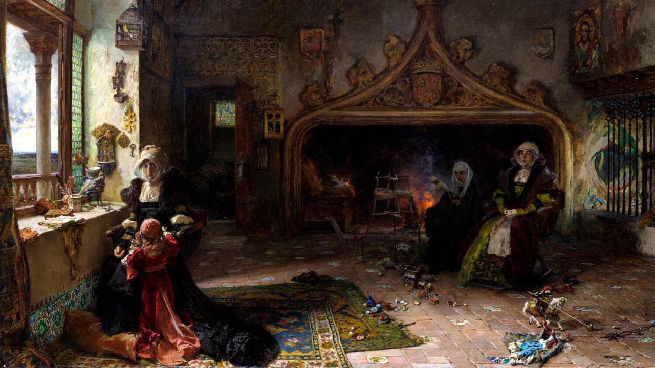 En relación con su lienzo más famoso, el Prado conserva, además del boceto, el primer pensamiento pintado para esa obra, ‘La reina doña Juana la Loca en los adarves del castillo de la Mota’ (1876). A ellos hay que agregar la copia grabada del lienzo final, de extraordinaria calidad, realizada por Bartolomé Maura. De la otra gran pintura de historia del artista, ‘La rendición de Granada’, realizada para el Palacio del Senado, guarda asimismo un estudio preparatorio tomado del natural para el caballo de Boabdil, titulado ‘Caballo árabe del conde Bobrinski’ (1880).