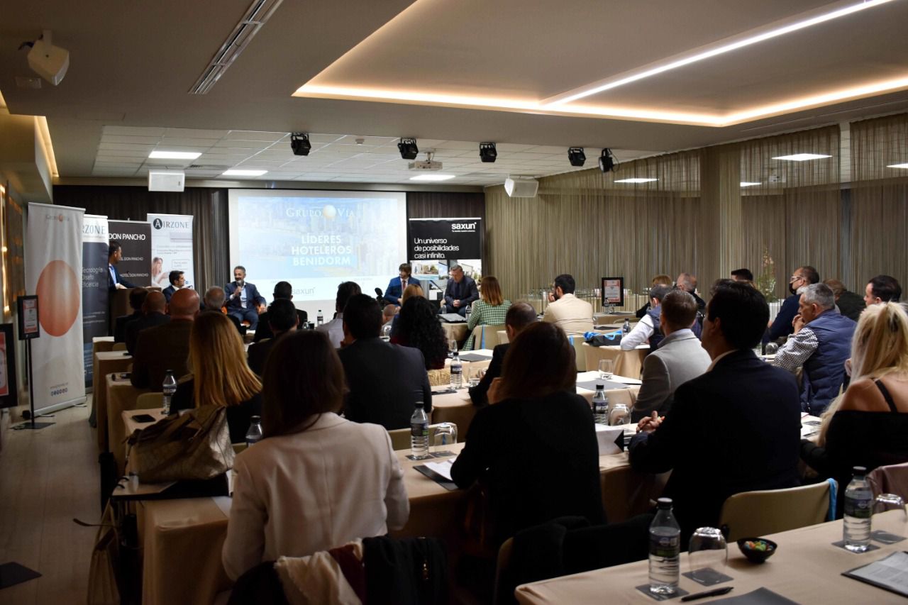 Profesionales y directivos del sector hotelero de Benidorm como Francisco J. Quiles de GRUPO DON PANCHO, Marta Roca Mora de ACCOR HOTELES, Francesc Holgado de CASUAL HOTELES, Pablo Hernández Ubiria de HOTELES RH, Isabel González de MELIÁ VILLAITANA, Rafael Blanquer de PORT HOTELES, Pablo Villamediana de MEDPLAYA y John Galiana de HOTELES POSEIDÓN, han participado en el debate organizado por el Grupo Vía en el Hotel Don Pancho.