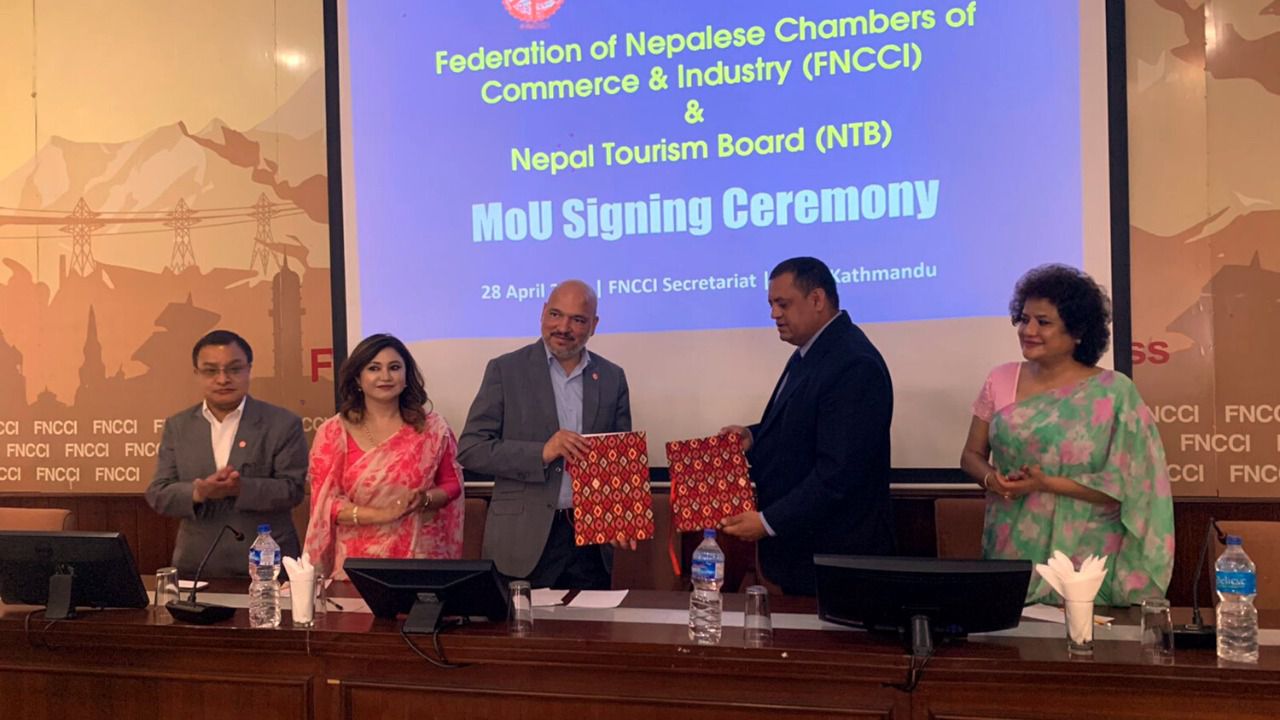 La Junta de Turismo de Nepal (NTB) y la Federación de Cámaras de Comercio e Industria de Nepal (FNCCI) firmaron un memorando de entendimiento (MOU) con el objetivo de cooperar en la promoción del turismo de Nepal. Tras este acuerdo, las dos organizaciones han acordado colaborar en la promoción y el desarrollo del concepto. El memorando de entendimiento fue firmado en nombre de NTB por el CEO Dr. Dhananjay Regmi y el presidente de FNCCI, Sr. Shekhar Golchha.