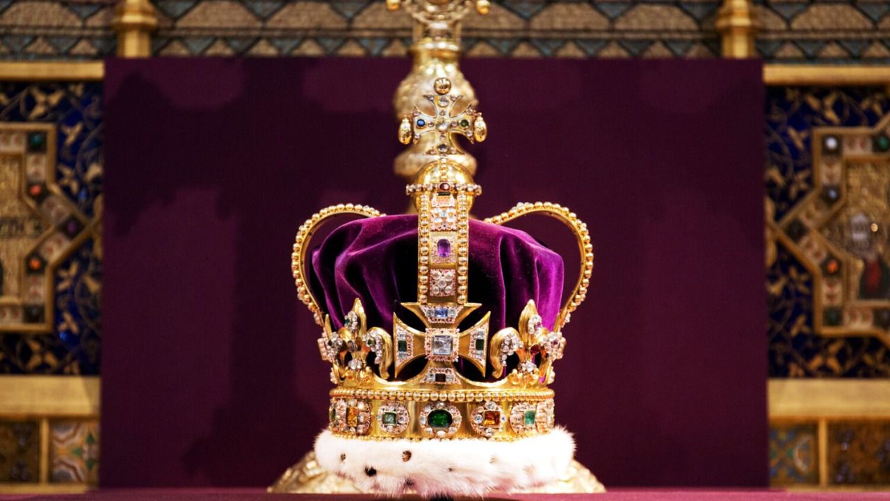 Carlos llevará la Corona de San Eduardo en su coronación en la Abadía de Westminster. La magnífica montura de oro macizo pesa 2,23 kg (casi 5 libras) y está adornada con rubíes, amatistas, zafiros, granate, topacios y turmalinas. Se fabricó para la coronación de Carlos II en sustitución de la corona medieval fundida por los parlamentarios en 1649, tras la ejecución del rey Carlos I.