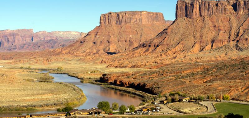 Dónde alojarse: Situado en el río Colorado, a 24 km del parque nacional de los Arcos, uno de los lugares más visitados de Moab, el Red Cliffs Lodge es un complejo turístico con la etiqueta de Viajes sostenibles que ofrece una auténtica decoración estilo western, con suelos de baldosa mexicana, techos con paneles de madera y muebles de madera maciza. También hay un corral de caballos, un museo de películas del oeste y la bodega Castle Creek.