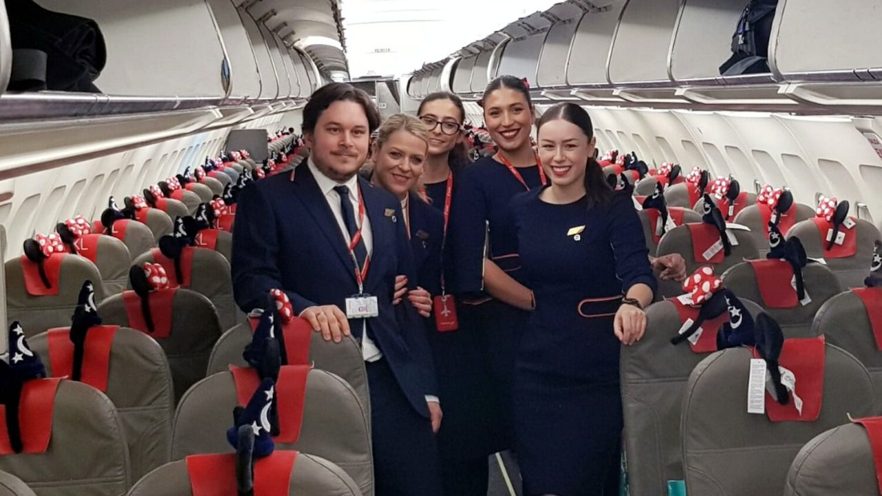 Tras embarcar, los pasajeros se han encontrado en cada asiento con un regalo recién llegado del Reino de la Magia que incluía entro otras cosas, un peluche Disney y las orejitas más famosas del Parque. Un pequeño adelanto de lo que les esperaba cuando alcanzaran los 30 000 pies de altura, que, al ritmo de la famosa canción de La sirenita “Parte de él”, and recibido una entrada doble para cada pasajero para visitar el principal destino turístico europeo.
