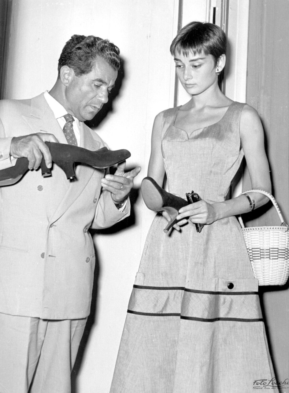 Sección IX: Zapatos y pies de famosos. La última sección de la exposición se basa en una conexión invisible entre los zapatos diseñados por el «zapatero de los sueños» y quienes los llevaban: estrellas de cine, aristócratas y la jet set internacional. Sus imágenes se muestran con los zapatos que encargaron a Salvatore, que medía personalmente los pies de sus clientes y tomaba nota de sus idiosincrasias, estilos favoritos y gustos personales.
