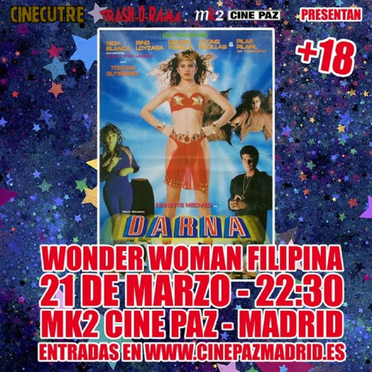 La superheroína Darna, conocida como la “Wonder Woman filipina” y un icono cultural en su país de origen, llega al mk2 Cine Paz de Madrid el viernes 21 de marzo a las 22:30 horas con la proyección en alta definición de su película de 1991, dentro de una sesión especial de “cine cutre” organizada por el festival internacional CUTRECON y la distribuidora Trash-O-Rama.