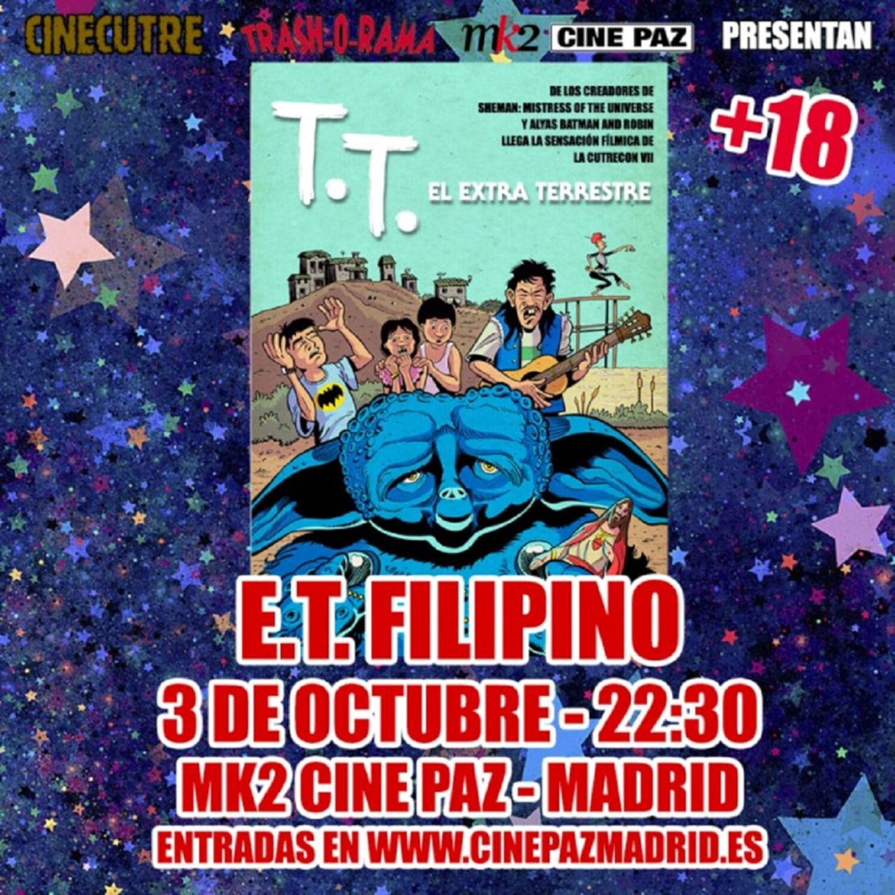 T.T. El Extraterrestre” (1991), el descarado plagio filipino de “E.T. El Extraterrestre” (1982) de Steven Spielberg, se proyectará el viernes 3 de octubre a las 22:30 horas en el mk2 Cine Paz de Madrid, en una nueva sesión de “cine cutre” organizada por el Festival Internacional CUTRECON y la distribuidora Trash-O-Rama.