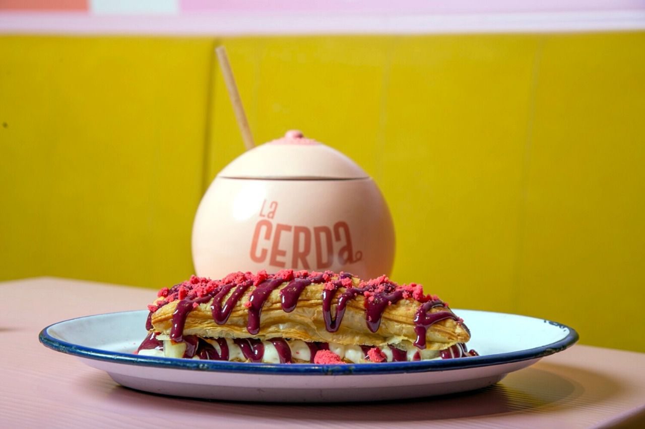 Entre los platos que probamos destacan el pani puri de salmón, exótico y lleno de personalidad; la ensalada de calabaza con gorgonzola, fresca y otoñal; la panceta melosa, jugosa y sabrosa; y la arepa de ají amarillo con carne mechada, crujiente por fuera y tierna por dentro. El steak tartar, reinterpretado al estilo La Cerda con emulsión de jalapeños madurados, rabanitos y pan pergamena negro, una de las estrellas de sus platos, mientras que el salmón sobre croqueta de guacamole ofrecía un equilibrio perfecto entre cremosidad y frescura. Luego para los paladares más golosos, la milhojas de manzana y el tiramisú de Nutella prometen consolidarse como los postres imprescindibles de esta renovada carta.