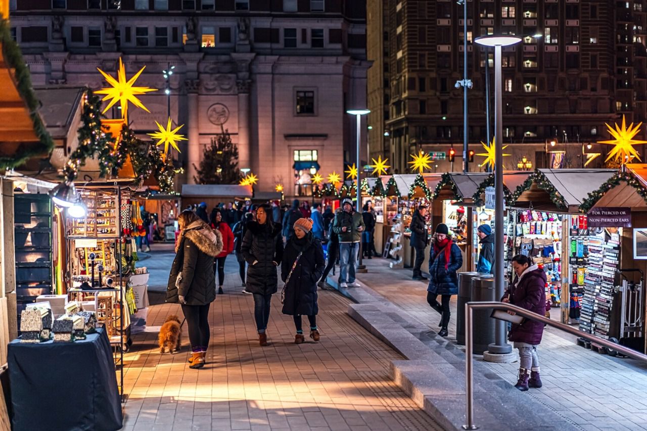 Inspirada en los tradicionales Christkindlmarkts alemanes, la Aldea Navideña de Filadelfia transforma LOVE Park y el Ayuntamiento en un mercado navideño al aire libre. Más de 80 vendedores locales e internacionales esperan a los visitantes en sus típicas casitas de madera, ofreciendo regalos navideños, decoraciones, joyería y artesanías de alta calidad. En este lugar mágico, el aire se impregna con el aroma de especialidades de temporada como bratwurst, gofres y el tradicional Glühwein (vino caliente especiado). La aldea cobra vida cada día con presentaciones en vivo de bandas locales, grupos de danza y artistas emergentes.