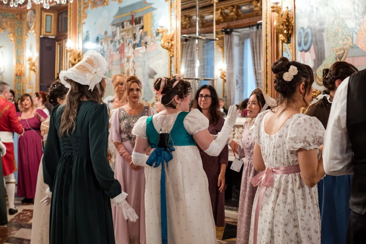 Tras la conferencia, los asistentes pudieron sumergirse en una auténtica experiencia de recreación histórica de la Inglaterra del siglo XIX, participando en clubs de lectura dedicados a Orgullo y prejuicio y Emma, y en talleres que exploraban las costumbres y modas de la Regencia. El punto culminante de la jornada fue el gran baile de Netherfield, que se abrió con una escena interpretada por Lizzy Bennet y Mr. Darcy, recreando un momento emblemático de la novela, acompañados por un cuarteto de cuerda que ofreció música en directo, mientras los asistentes disfrutaban del ambiente elegante y festivo que caracterizaba los salones de la época.