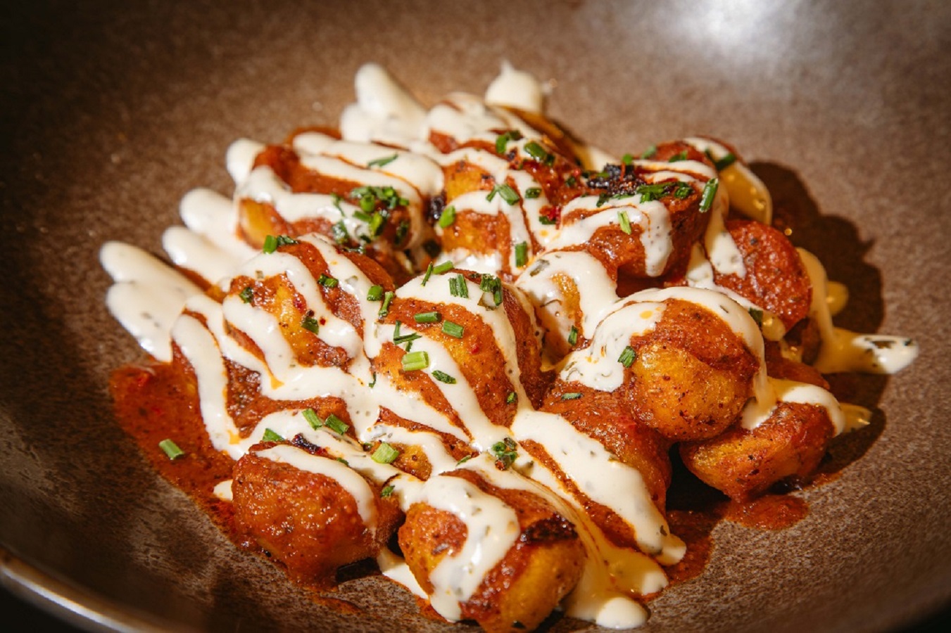 Entre las opciones para compartir, destacan el falafel con pesto de cilantro y el hummus de calabaza y mango, servidos con pan naan y endivias, que invitan a explorar texturas y sabores de manera ligera y divertida. Otra propuesta que sorprende a los comensales son las bravas de gnocchi, una reinterpretación innovadora del clásico que refleja la versatilidad y el espíritu creativo de Brodis.