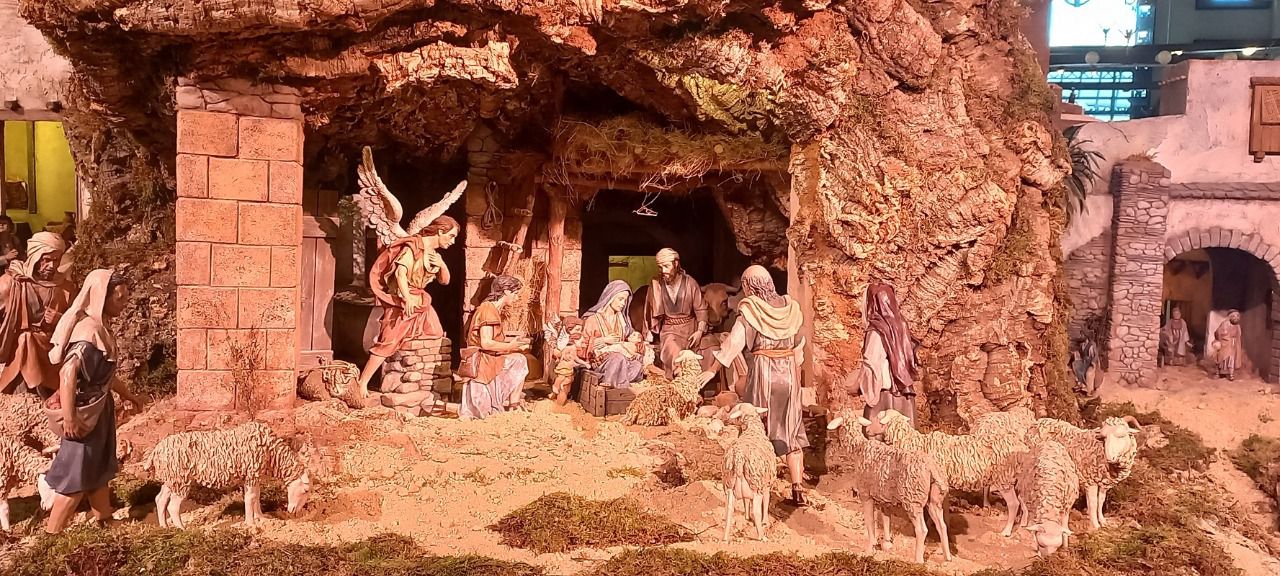 El recorrido continúa con la Anunciación a los pastores, ambientada bajo un cielo estrellado y con el ganado refugiado en una cueva.