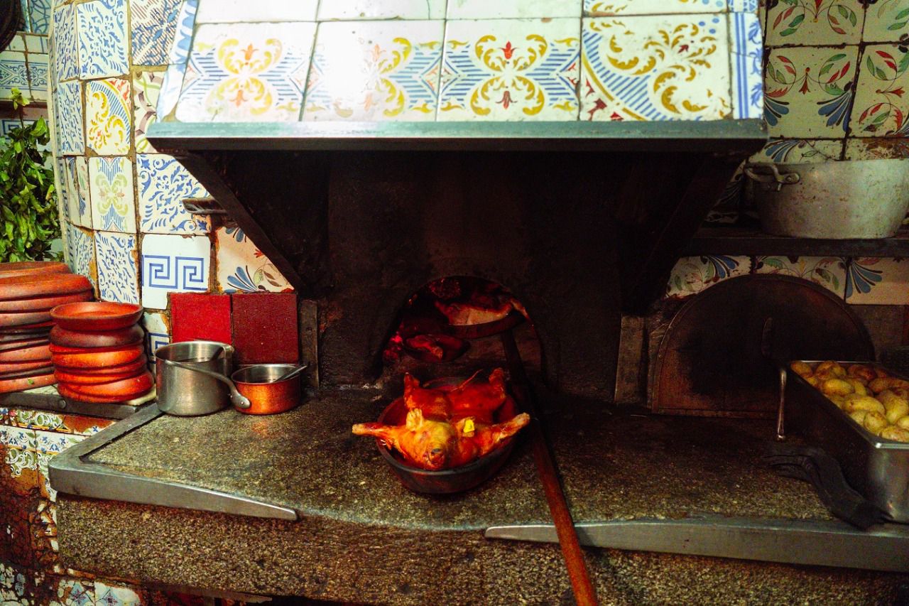 Cordero Lechal Asado: el otro gran emblema del restaurante. Perfecto para las reuniones familiares propias de estas fechas, el cordero de Botín mantiene una elaboración idéntica desde hace siglos: fuego lento, barro y tradición pura.