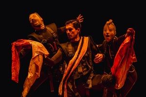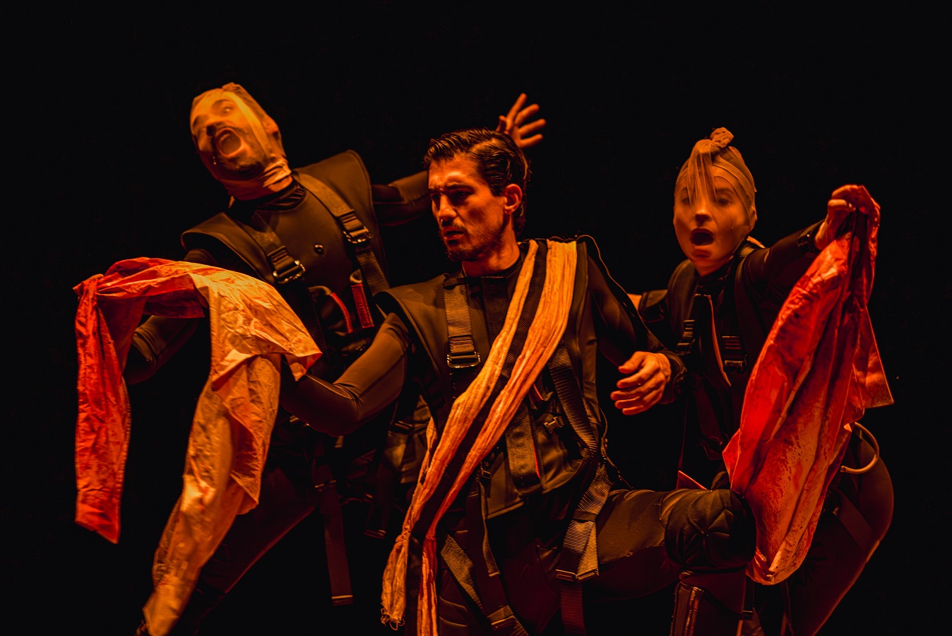 Ay Teatro presenta una versión sintetizada de cuatro cumbres teatrales de Occidente en un espectáculo que indaga en sus conexiones y traza un arco entre los conflictos familiares, las maldiciones, los enfrentamientos personales y bélicos, los personajes recurrentes como Tiresias, Creonte, el coro trágico…y la mítica Esfinge que sobrevuela esta cadena de sangre derramada a lo largo de generaciones.