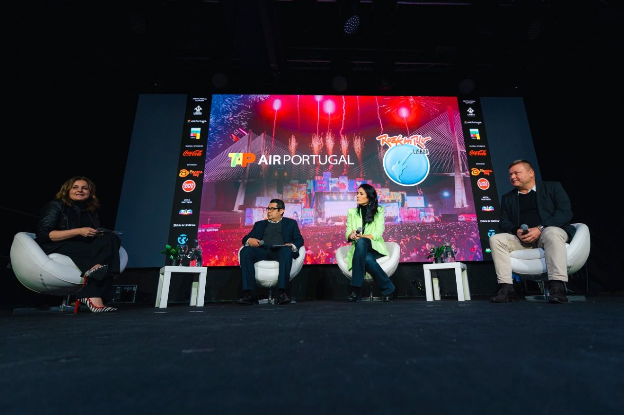 El encuentro contó con la participación de Roberta Medina, vicepresidenta ejecutiva de Rock in Rio, y de los directivos de TAP Air Portugal Mario Cruz, Chief Commercial Officer, y Frederic Gossot, director global de Ventas y Distribución de la aerolínea. La conversación fue moderada por Paloma Utrera Martínez, Market Manager para España y Francia de TAP Air Portugal.