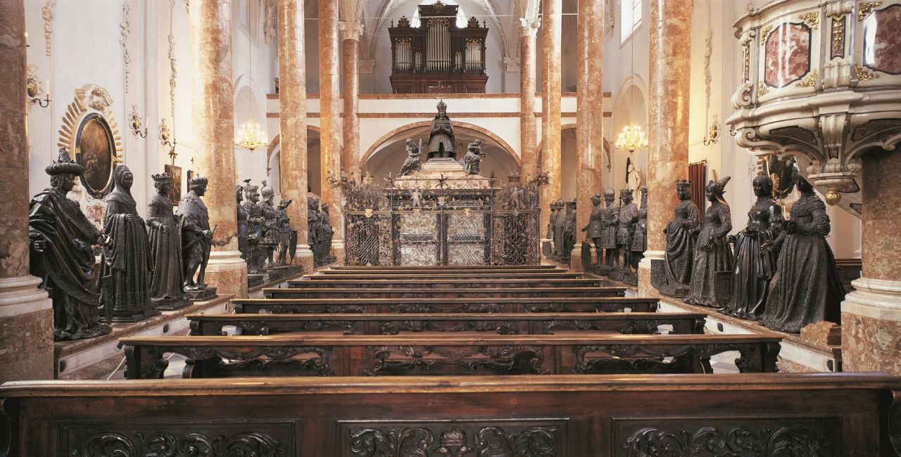 La Iglesia de la Corte Imperial de Innsbruck, o Hofkirche, alberga una de las tumbas imperiales más imponentes de Europa. Lo paradójico es que está vacía: Maximiliano I no descansa ahí, sino en la ciudad austriaca de Wiener Neustadt. A su alrededor, 28 estatuas de bronce de tamaño natural, conocidas como los “Hombres Negros”, representan a sus antepasados. Otro detalle menos conocido es que, entre ellos, hay también ocho mujeres, algo poco habitual para la época.