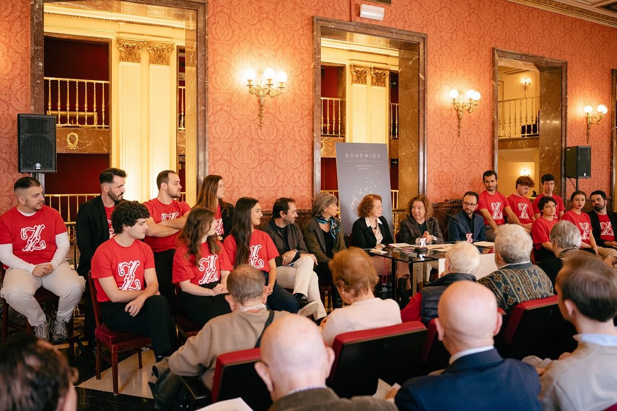 Serán 16 las funciones entre el 20 de febrero y el 1 de marzo (11 escolares y 5 abiertas al público). Roberto, Víctor, Cossette y el resto de personajes de ‘Bohemios’ cobran vida gracias a un elenco de 16 jóvenes actores y cantantes de entre 18 y 30 años que han sido seleccionados en un exigente proceso de audiciones. Como en ediciones anteriores, Antonio Fauró, director del Coro Titular del Teatro de la Zarzuela ha colaborado en la preparación de las voces. En el foso, una orquesta integrada por quince músicos de la Joven Orquesta Nacional de España (JONDE) con edades comprendidas entre los 20 y los 26 años, seguirá las órdenes de la batuta de Julio César Picos.