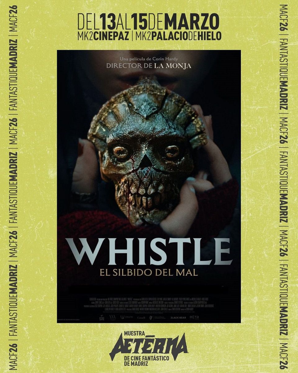 Entre los títulos más destacados se halla “Whistle: El silbido del mal”, el nuevo largometraje de Corin Hardy (“La Monja”), distribuido en España por Beta Fiction. Será su preestreno en nuestro país e incorpora en su reparto a la actriz española Dafne Keen, junto a nombres internacionales como Sophie Nélisse (“La ladrona de libros”, “Yellowjackets”), Percy Hynes White (“Miércoles”) o Nick Frost (“Zombies Party”, “Arma Fatal”).