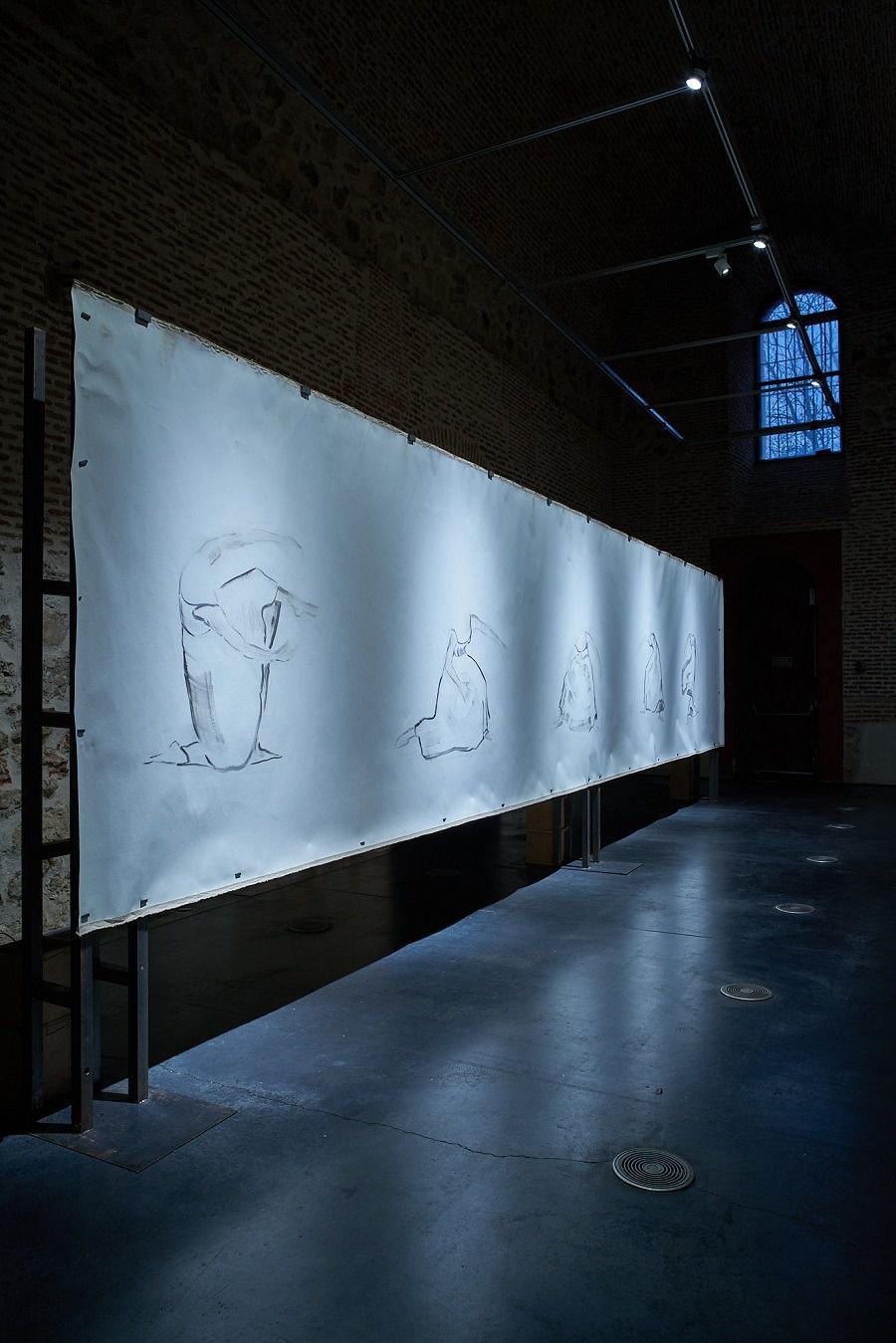 La artista visual Lola Lasurt toma como referencia una pieza de la coreógrafa Marta Graham de 1937 para reconstruirla desde la perfomance y la pintura. Se trata de Ensayo para Deep Song, serie de tres piezas que por primera vez se expone completa en la Sala de Bóvedas y traduce el movimiento de la danza al ejercicio de la pintura.