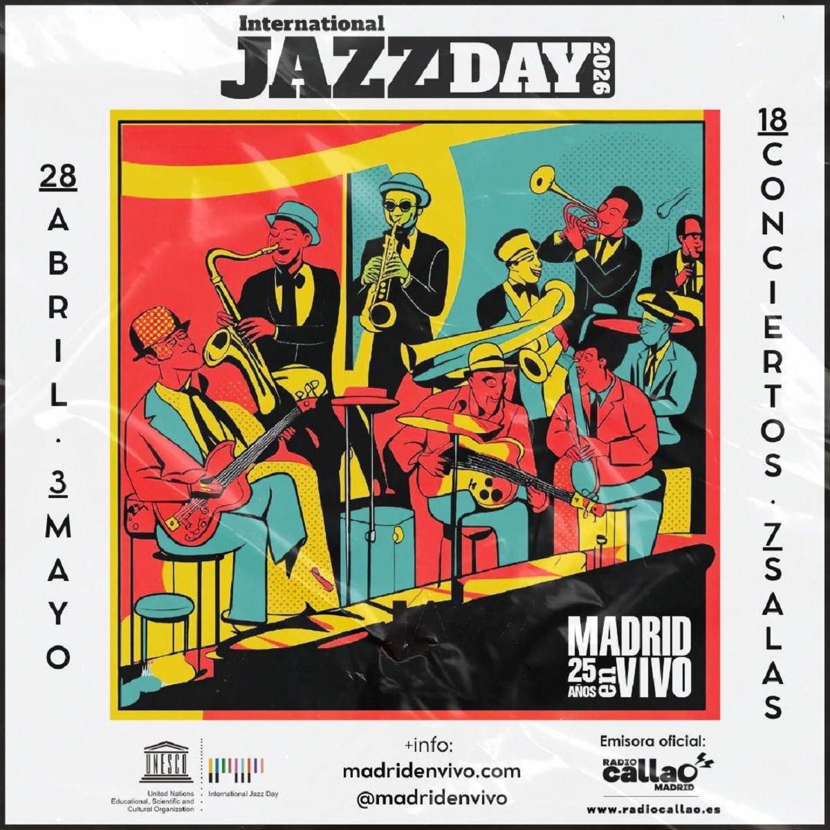 Cada 30 de abril el mundo celebra el Día Internacional del Jazz, declarado por la UNESCO. Con motivo de esta efeméride, y fieles al fomento de la escena de jazz madrileña, Madrid en Vivo organiza el ciclo INTERNATIONAL JAZZ DAY 2026, brindando al público la oportunidad de disfrutar de 18 conciertos en 7 salas y clubes de jazz madrileños. Este ciclo constituye la celebración oficial del International Jazz Day en Madrid, una iniciativa impulsada por la UNESCO y el Herbie Hancock Institute. Un año más, Radio Callao Madrid será la emisora oficial del ciclo, apoyando y dando difusión a todas las actuaciones con programas y contenidos especiales. La programación de esta edición se desarrollará entre el martes 28 de abril y el domingo 3 de mayo.