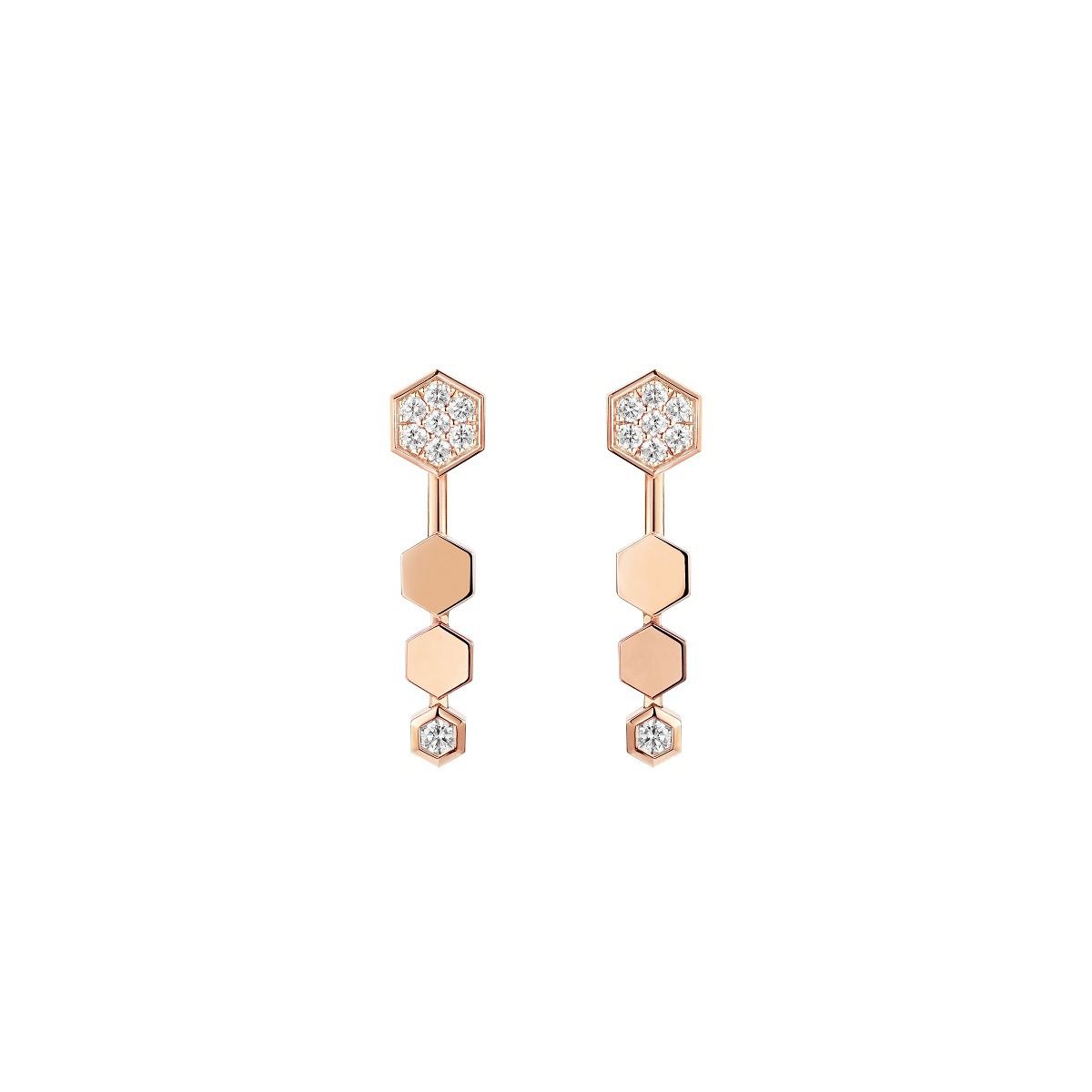 El pendiente Bee de Chaumet 2026 encarna la esencia más icónica de la colección a través de un diseño equilibrado y luminoso. Elaborado en oro rosa y engastado con diamantes de talla brillante, la pieza destaca por su composición refinada que evoca geometría armoniosa del universo de la abeja.