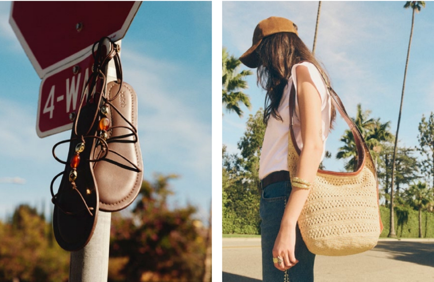 Los accesorios completan el look con carácter: bolsos de rafia icónicos y sandalias estivales que equilibran comodidad y elegancia. Los flecos en movimiento y las gafas de sol oversize aportan un toque audaz y contemporáneo a las siluetas.