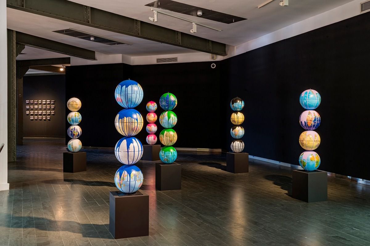 Entre las obras, destacan series como la «Biblioteca de Babel» donde los libros se convierten en artefactos de memoria y lucha, materializando discursos y movimientos relegados por la historia oficial. La palabra también aparece mediante piezas de neón que introducen consignas en el espacio expositivo. Los Washings, esculturas de globos terráqueos intervenidos con color, aluden a los procesos de “lavado” del capitalismo global.