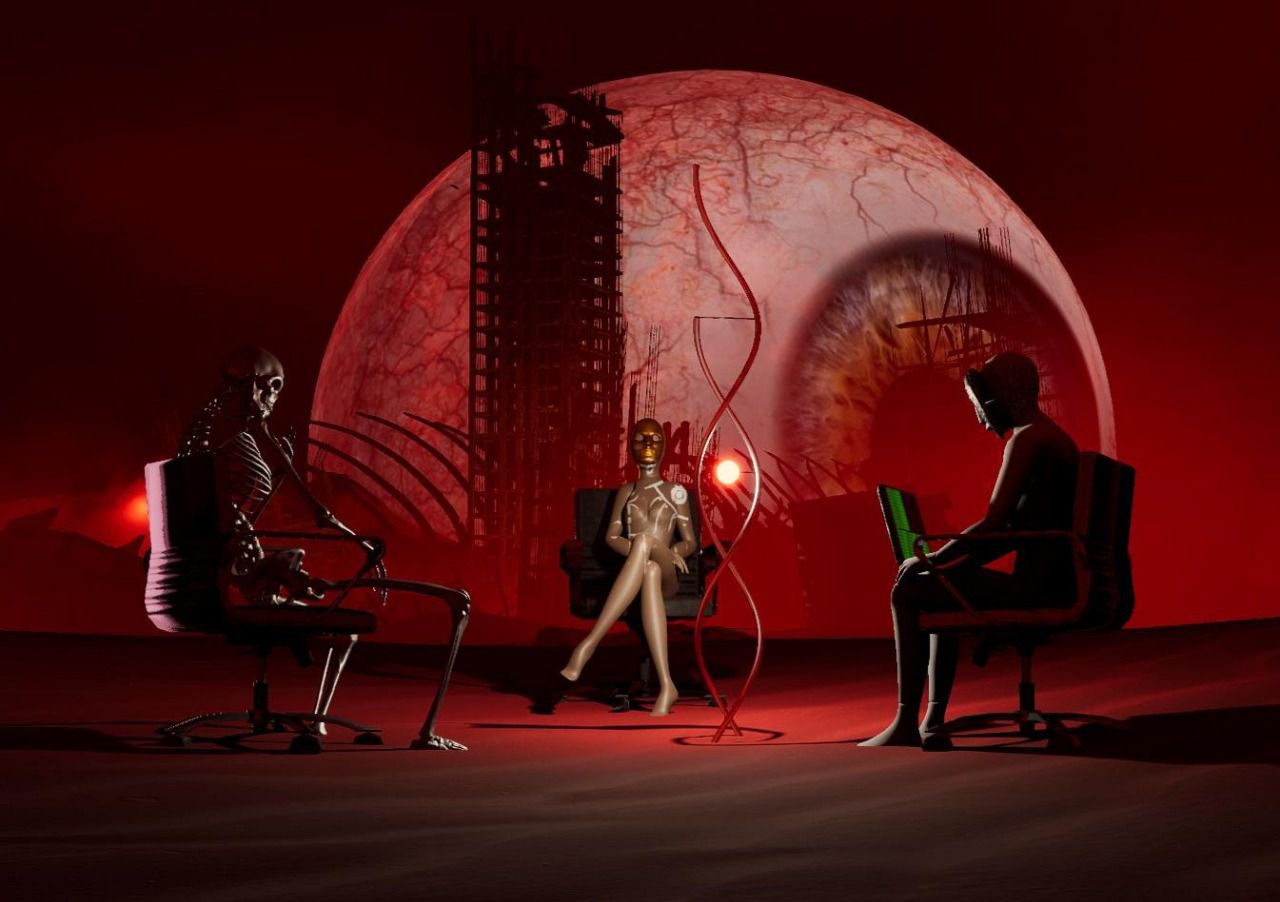 La obra sumerge al público en un mundo virtual que recuerda los entornos de videojuegos en línea, donde los jugadores quedan atrapados en un ciclo interminable que define la existencia contemporánea. Esta narrativa, cercana tanto a jugadores como a espectadores curiosos por la cultura digital, imagina un enlace compartido entre humanos e inteligencias artificiales, cuestionando cómo habitamos y entendemos los mundos que creamos.