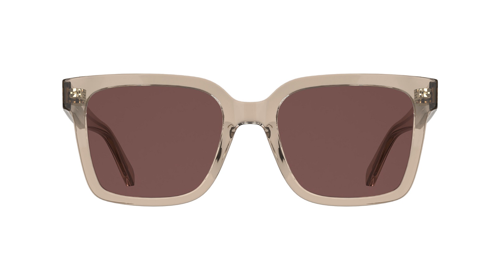 Entre los modelos destacados se encuentra el CKJ26301S, una montura de sol de frontal rectangular reinterpretado, elaborada en acetato fotosensible y con varillas que incorporan el logotipo de la marca y un sutil alambre metálico brillante. Está disponible en combinaciones que evolucionan del gris transparente al gris oscuro, del marrón al violeta, del rosa al caqui y del amarillo al lima.