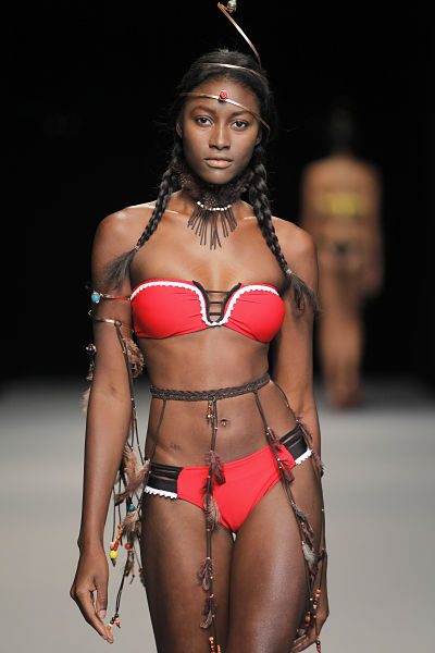 Patricia Santana, PS SIWMWEAR, presenta su colección Inspiraciones étnicas. Un viaje por la moda de las tribus más representativas de los cinco continentes. Un paso más allá en el camino de la moda de estilo étnico. El rojo, el negro y el amarillo otorgan todo el protagonismo a volantes, pompones y pasamanería, elementos marca de la casa. El desfile se completa con los espectaculares complementos de CREANDO ESTILO y los zapatos de CUPLÉ.