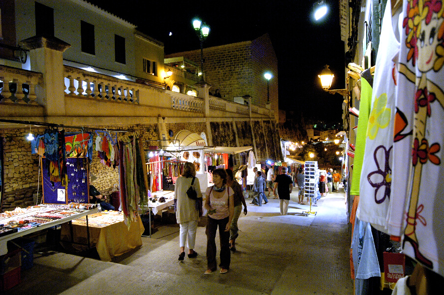 La bella localidad de Alaior también cuenta con sus mercados nocturnos, como el de Cala en Porter, con textiles, calzado, muebles, alimentación (lunes y jueves de 19 a 23 horas) y el Mercado de Noche de Alaior, muy concurrido, en el que se suceden actividades culturales, degustaciones, talleres (entre finales de junio y principios de septiembre, de 19 a 23 horas en el centro del pueblo).