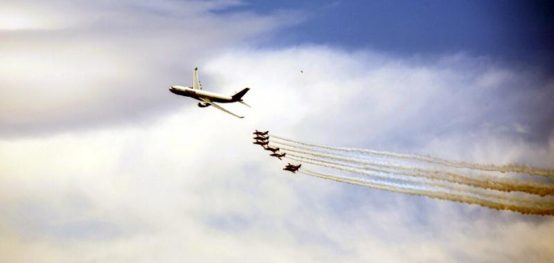 Cerca de 2.500 invitados, entre clientes, empleados, proveedores, socios y otras personas vinculadas a la historia de la compañía, han podido disfrutar del vuelo de 17 aviones históricos de la Fundación Infante de Orleans (FIO), además del vuelo acrobático de los aviones de la Patrulla Águila del Ejército del Aire acompañada por un Airbus A330 de la aerolínea.