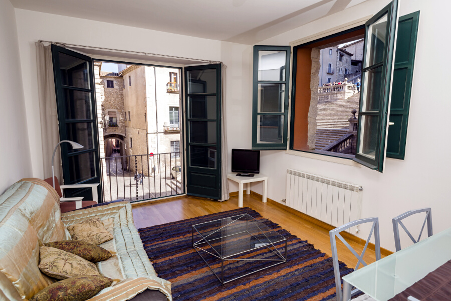 Margaery Tyrell esperó pacientemente su expiación en las antiguas escaleras de la Catedral de Girona, visibles desde la ventana del apartamento situado en esta casa histórica. Si bien está ubicada en un lugar histórico de la ciudad, la casa fue reformada en 2002.