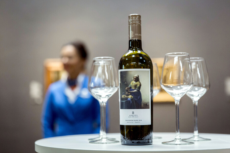KLM Royal Dutch Airlines sirve cinco vinos especiales en la clase World Business Class de sus vuelos de largo alcance durante los meses de agosto y septiembre. En las etiquetas de estos vinos, se han impreso reproducciones de pinturas de los artistas más famosos del Siglo de Oro holandés, entre las que se encuentran La lechera de Johannes Vermeer o Los síndicos de los pañeros de Rembrandt van Rijn, obras que están expuestas en el Rijksmuseum de Ámsterdam.