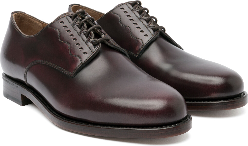 La androginia dominante en la colección continúa en bluchers planos y de tacón de impecable construcción Goodyear.