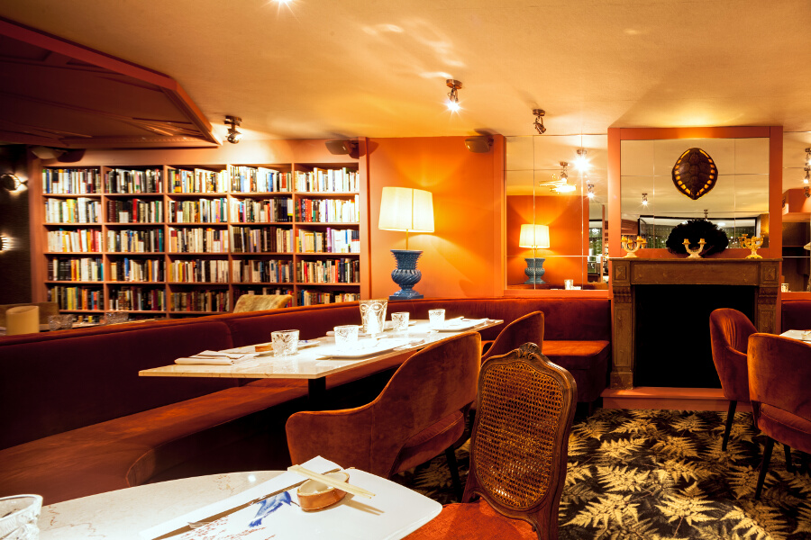 Una de las principales señas de identidad del local es su interiorismo. Al hilo de la nueva estética rompedora que el Grupo ha tomado para la imagen y logos de su nueva apertura, el estilo está inspirado en los estándares de decoración de 1867, cuando Japón participó en la Exposición Universal de París, creando una fuerte atracción entre Oriente y Occidente. Destacan las grandes estanterías rojas que presiden la entrada, llenas de libros evocadores de clara inspiración oriental, el suelo enmoquetado, la enorme chimenea y las paredes con motivos vegetales y de Art Noveau.