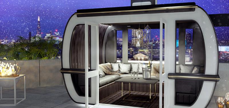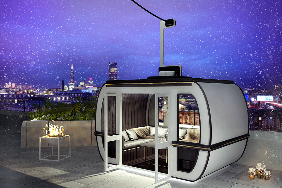 Los visitantes que reserven #AprèsWithAView recibirán su pase de acceso, a modo de forfait, a su llegada a ME London. Posteriormente, serán acompañados hasta RADIO a una de las tres telecabinas lujosamente decoradas para comenzar su escapada del caos de la ciudad. Desde la privacidad del teleférico, los invitados degustarán cócteles de invierno como ponche de ron con especias servido en tazas de chocolate o una copa de champán Veuve Clicquot (Magnum), con una fondue de queso de trufa y embutido como acompañantes.