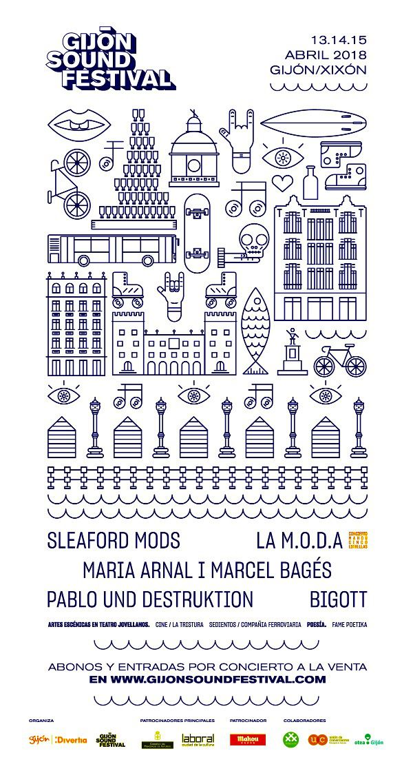 Gijón Sound Festival presenta sus primeros nombres para el festival de este año. Se trata de Sleaford Mods, Maria Arnal i Marcel Bagés, Pablo Und Destruktion, La M.O.D.A y Bigott.