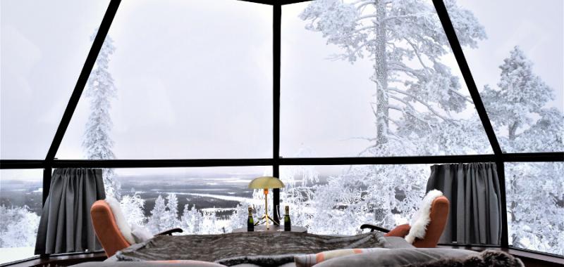 Situado en la Laponia finlandesa, en la zona más alta del páramo de Utsuvaara, el Golden Crown - Levin Iglut ofrece iglús de cristal totalmente aislados y con calefacción desde donde disfrutar de las deslumbrantes luces del cielo nocturno. Podrás relajarte desde la cama autorregulable mientras contemplas el cielo estrellado.